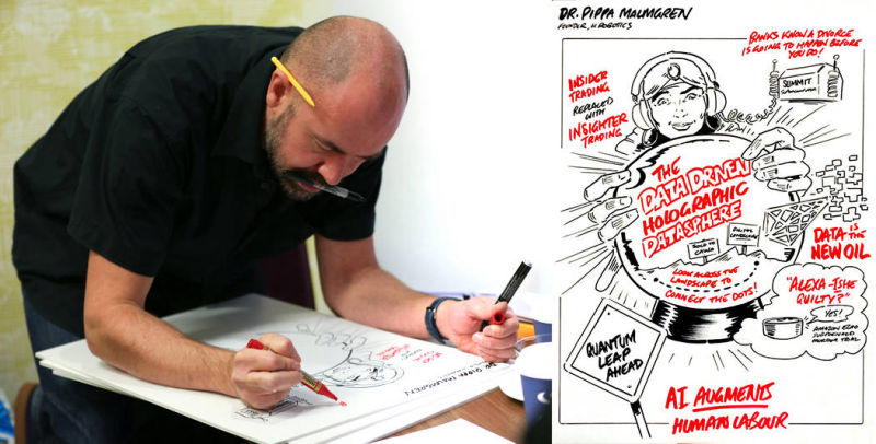 Runnning a conference or event? Use a Visualiser to scribe on a large mural or set of boards. Capture the key messages and learnings from your keynote speakers.